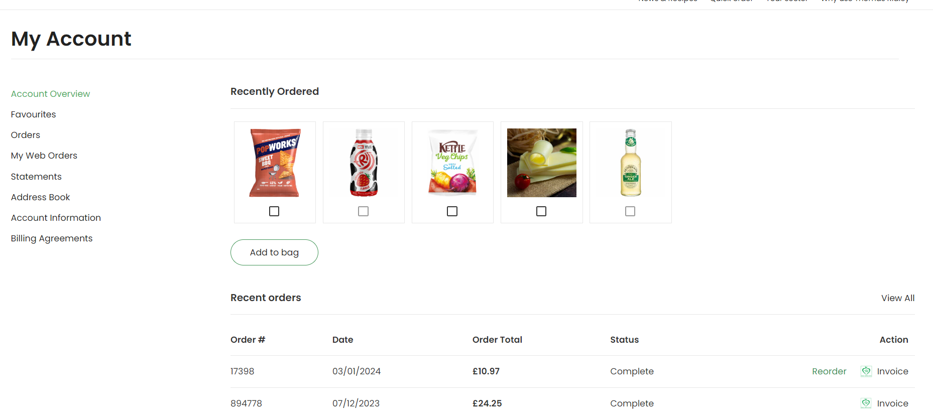 Once added, these products will appear in your favourites list in your account section – ready for you to order next time.