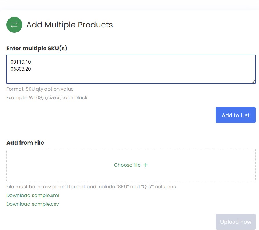 Here you can add multiple products via their SKUs and quantities to quickly build your order. It’s that simple!