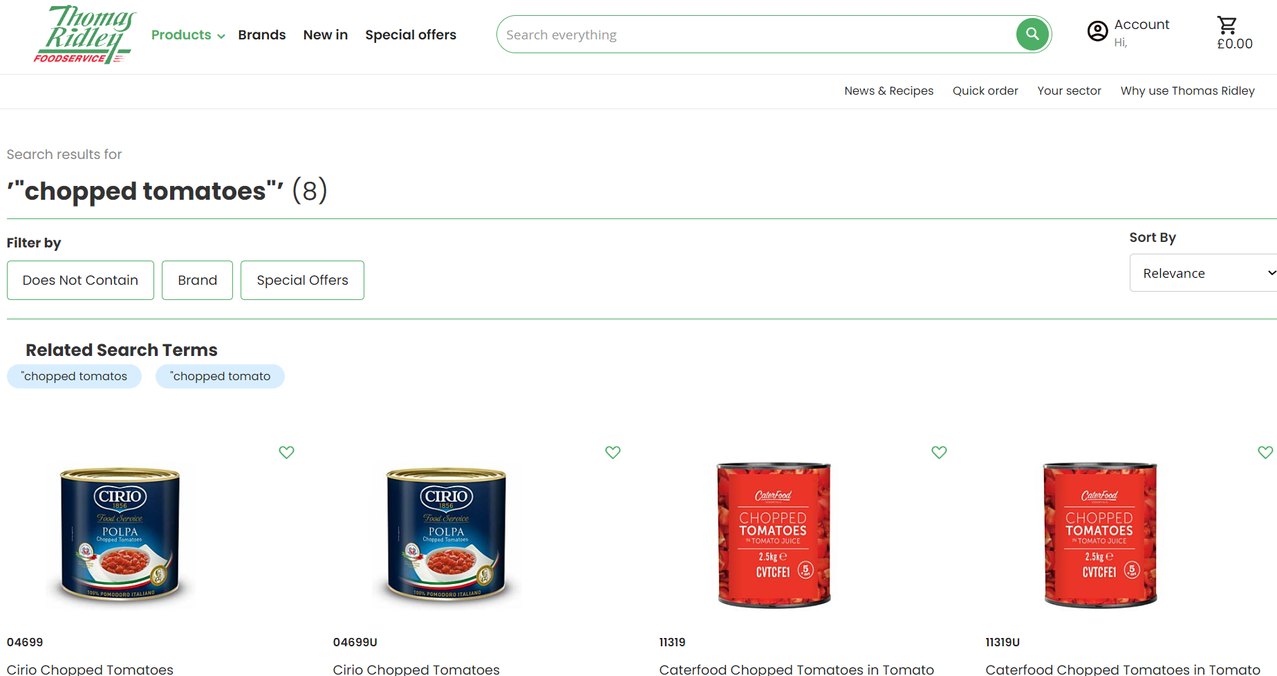 Easily make your search more specific by putting key terms in quotation marks e.g. “chopped tomatoes”