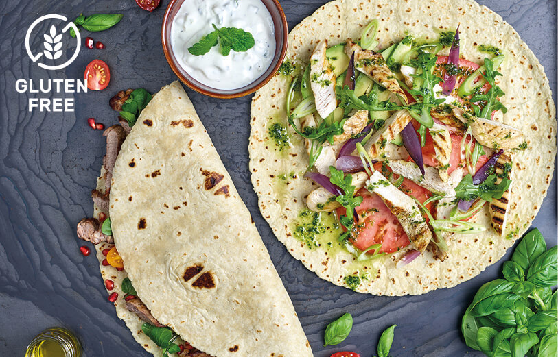 When offering gluten-free lighter bites and snacks, here are a few great options. Gluten-free wraps, gluten-free bread rolls, and gluten-free brioche rolls